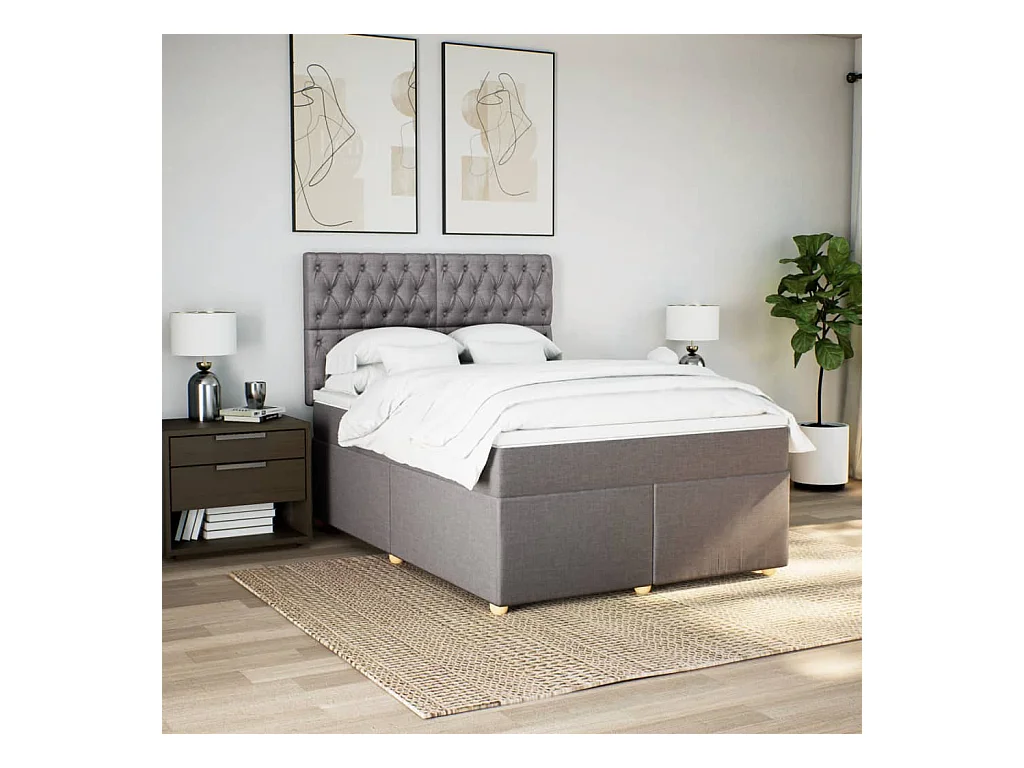 Cadre de lit avec matelas Taupe 140 x 200 cm tissu