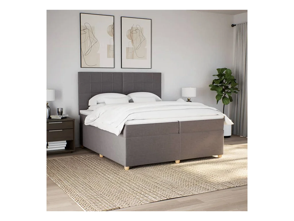 Sommier à lattes de lit avec matelas Taupe 200x200 cm Tissu