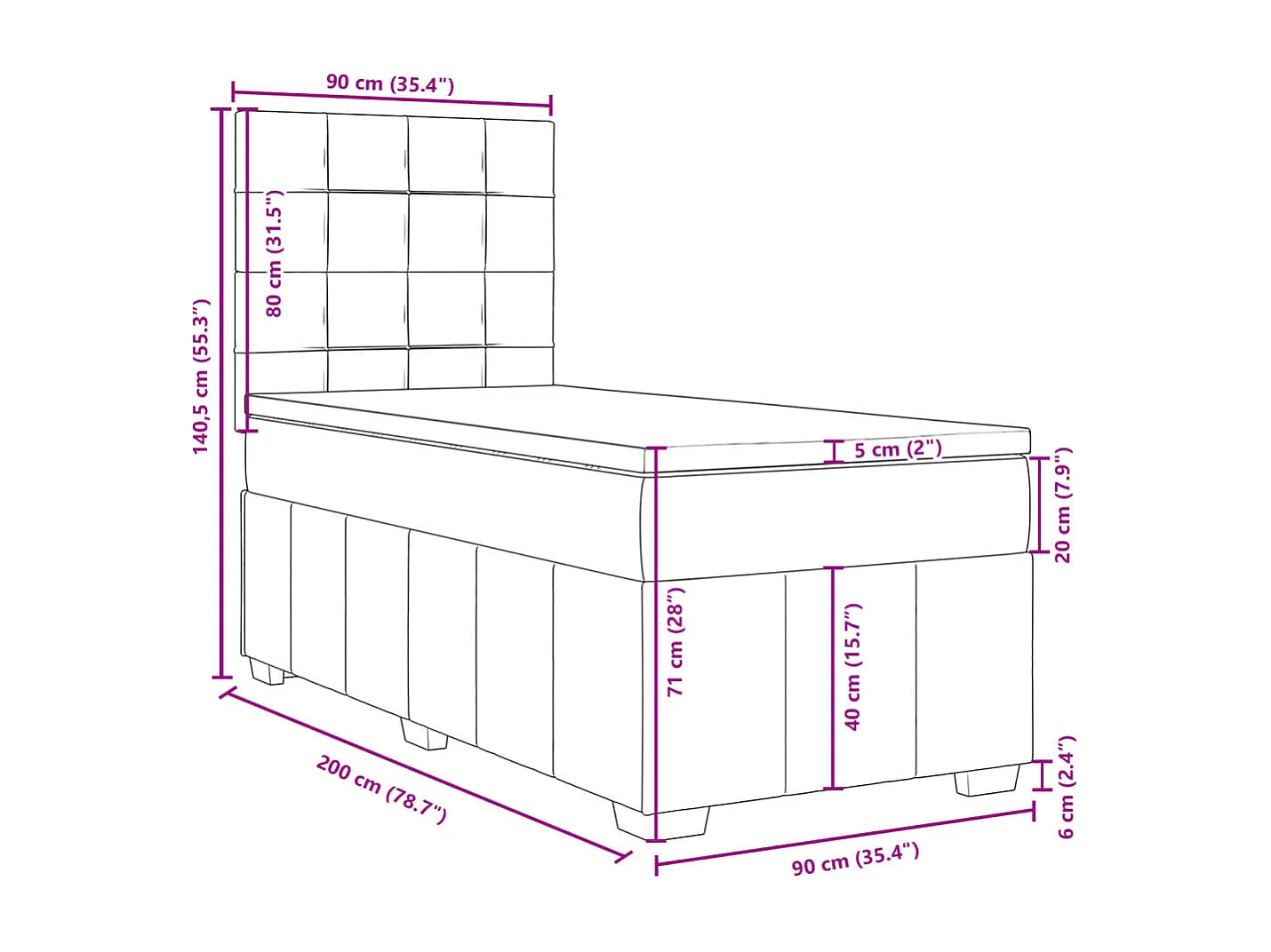 Sommier à lattes de lit avec matelas Taupe 90x200 cm Tissu