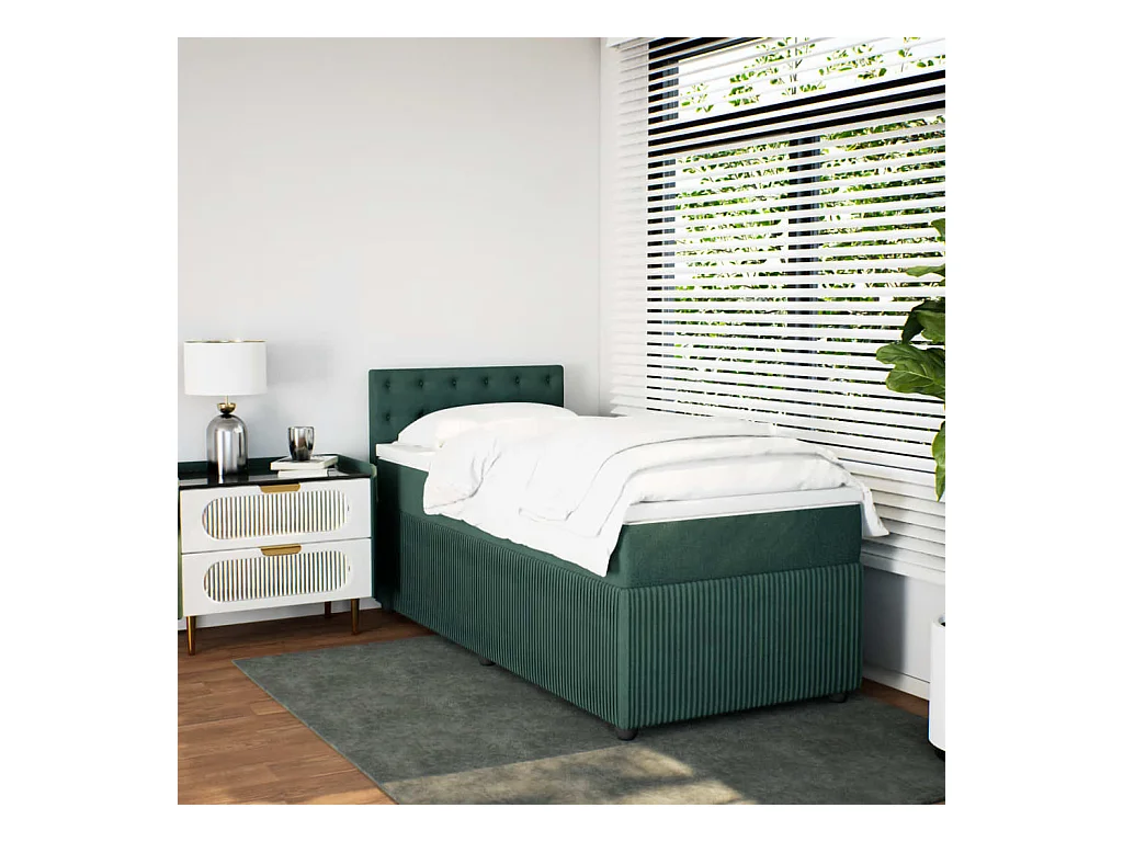 Sommier à lattes de lit avec matelas Vert foncé 90x190 cm
