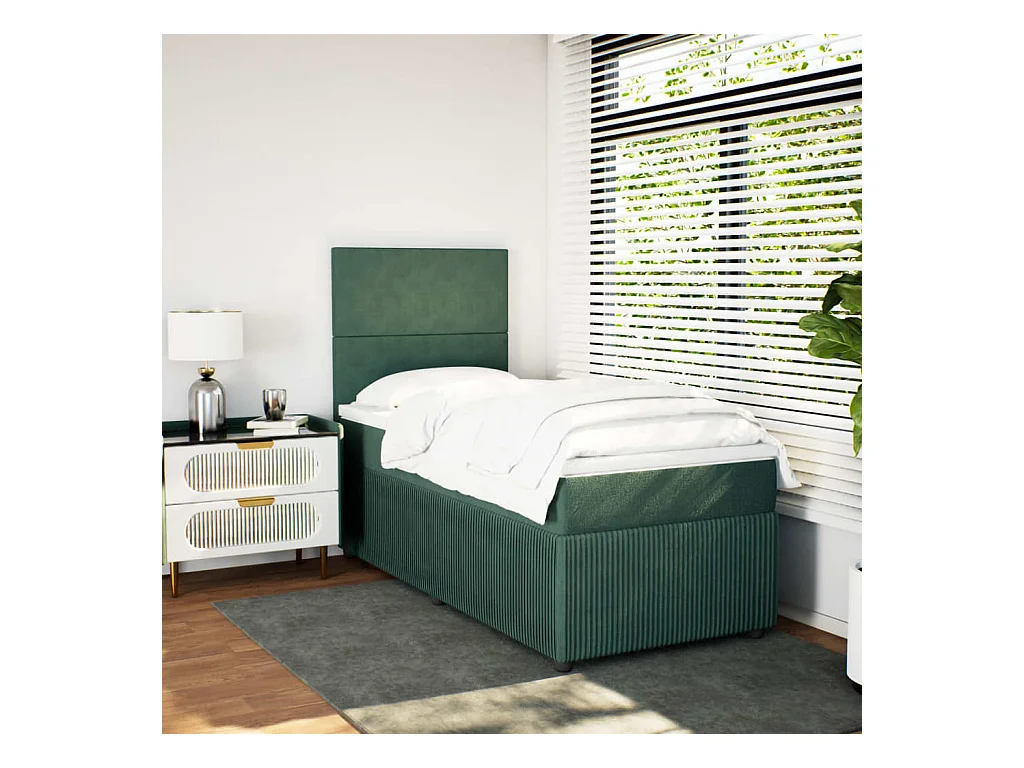 Sommier à lattes de lit avec matelas Vert foncé 90x190 cm