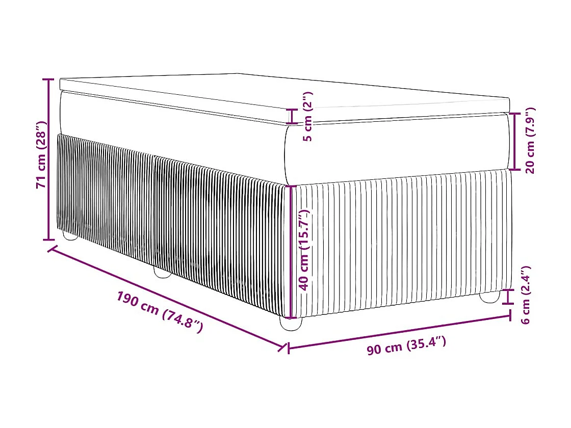 Cadre de lit avec matelas Vert foncé 90 x 190 cm tissu