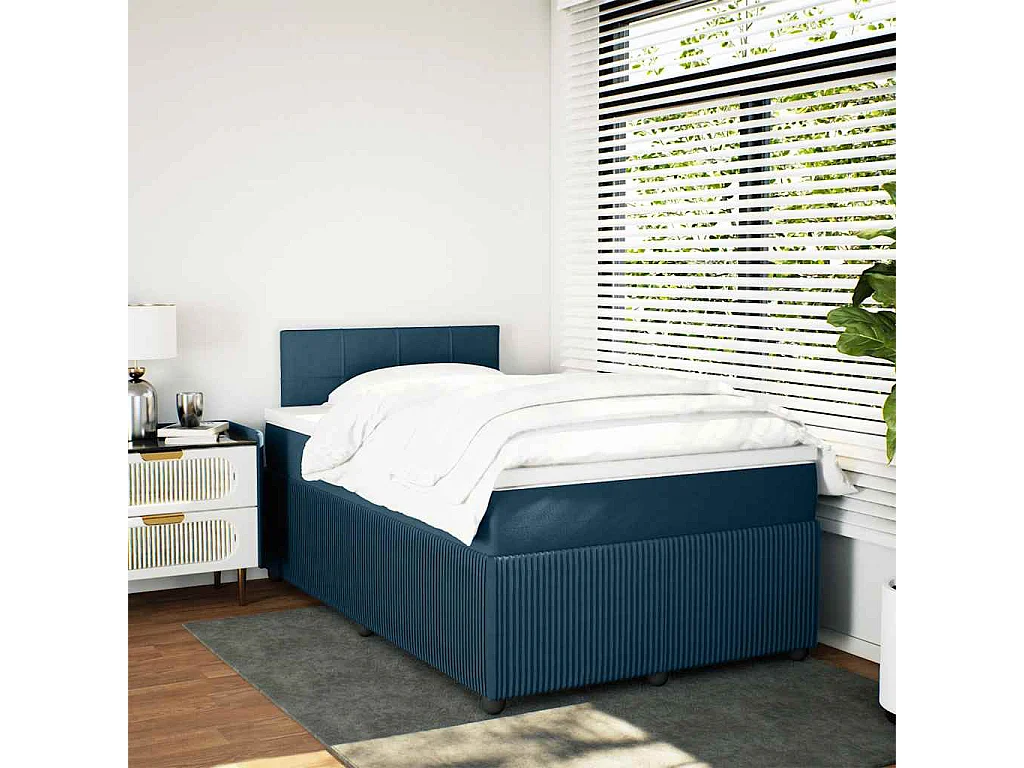 Sommier à lattes de lit et matelas bleu 120x200 cm velours