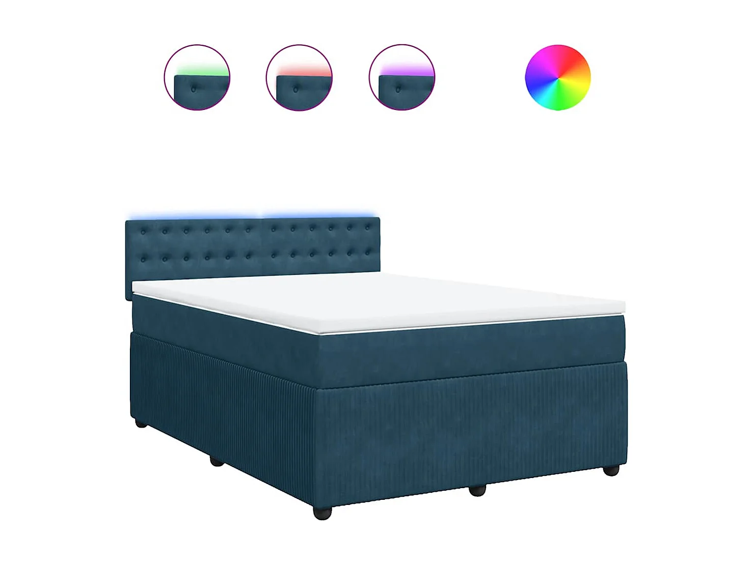 Sommier à lattes de lit et matelas bleu 140x190 cm velours