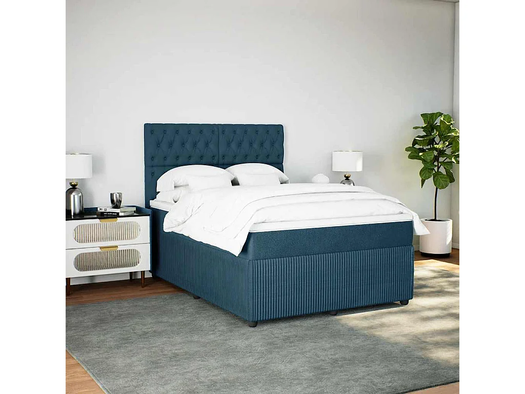 Sommier à lattes de lit et matelas bleu 140x190 cm velours
