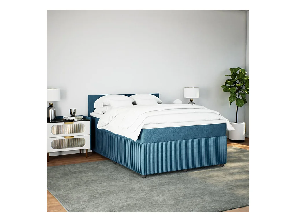 Sommier à lattes de lit et matelas bleu 140x200 cm velours