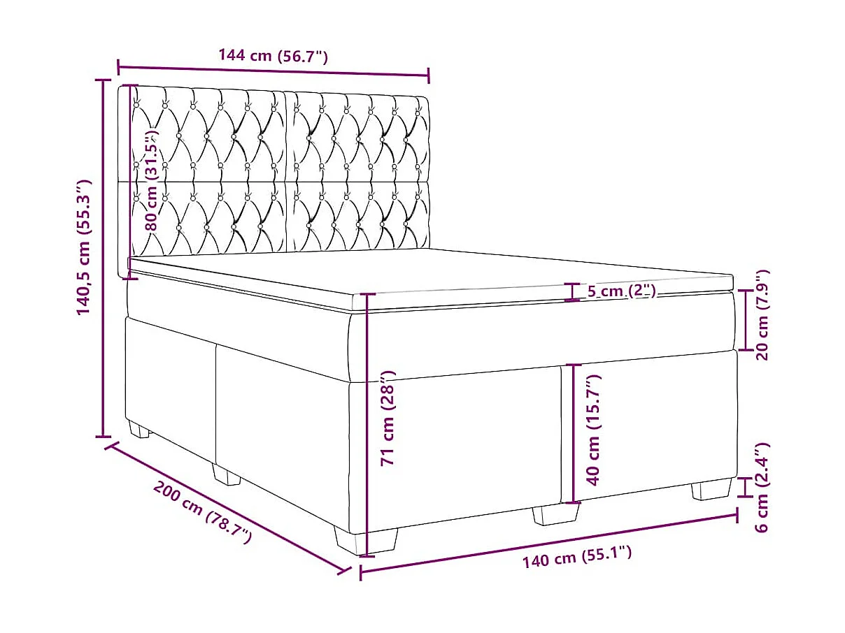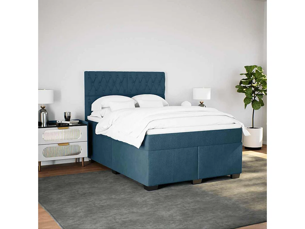 Sommier à lattes de lit et matelas bleu 140x200 cm velours