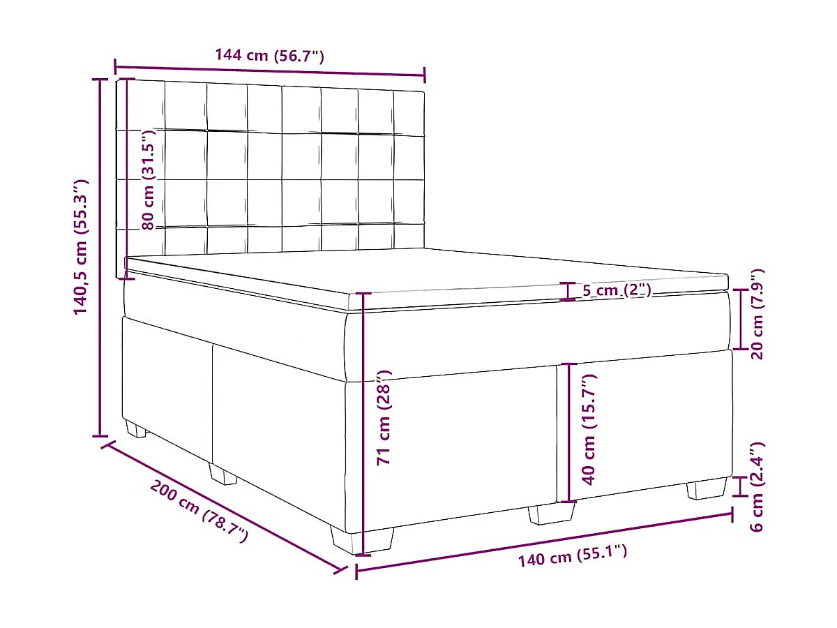 Sommier à lattes de lit et matelas bleu 140x200 cm velours