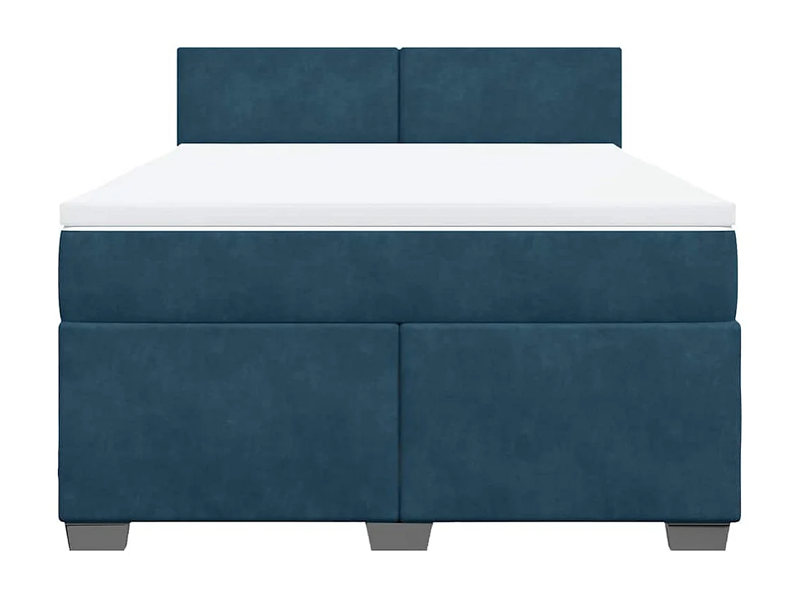 Sommier à lattes de lit et matelas bleu 160x200 cm velours