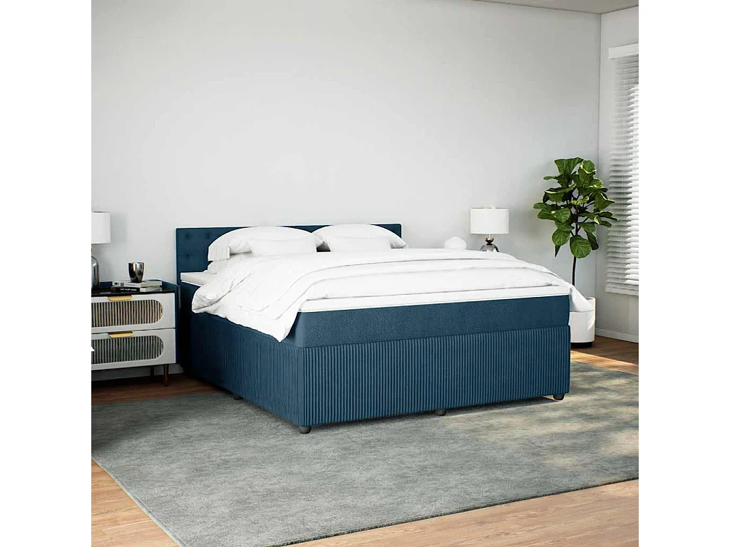 Sommier à lattes de lit et matelas bleu 180x200 cm velours