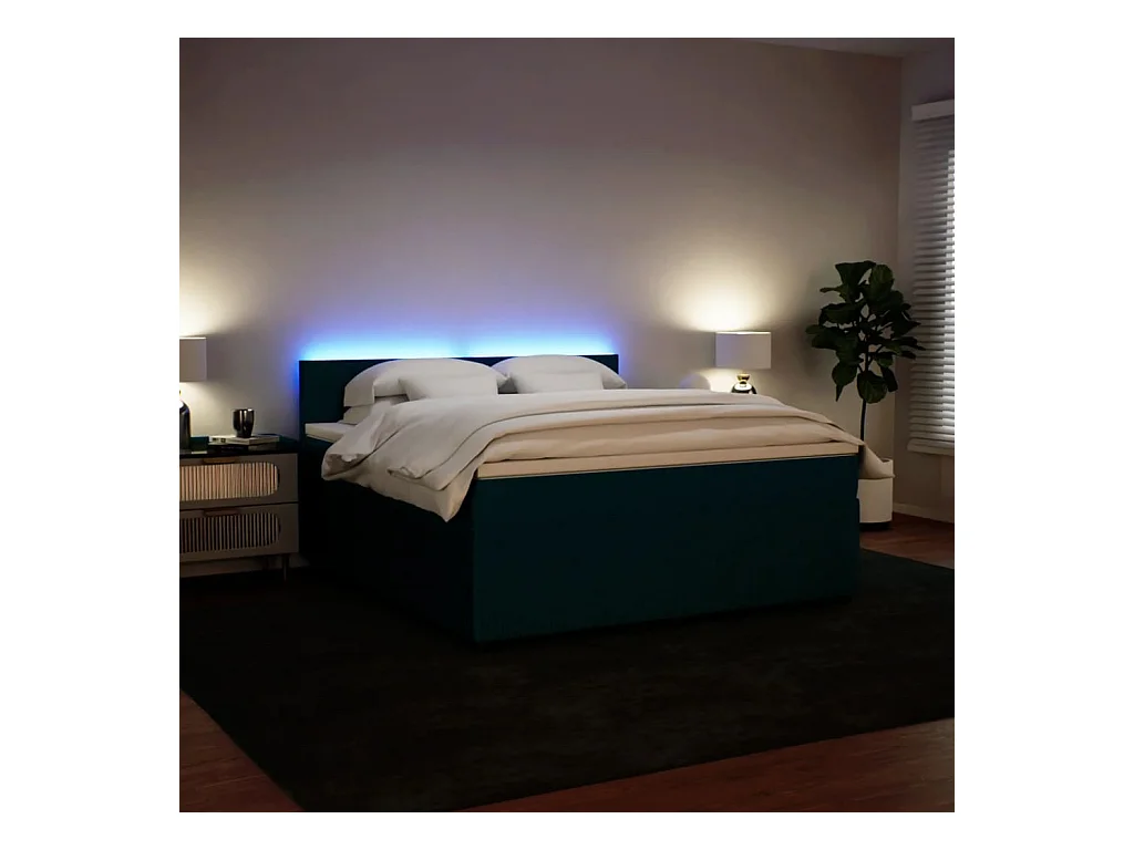 Sommier à lattes de lit et matelas bleu 180x200 cm velours
