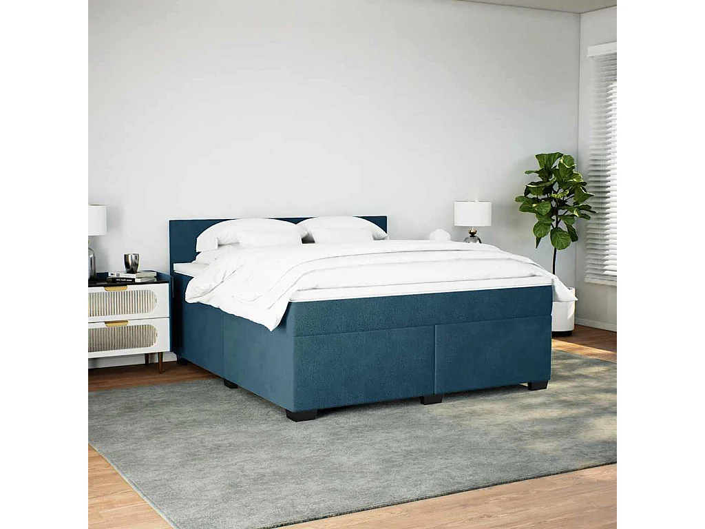 Sommier à lattes de lit et matelas bleu 180x200 cm velours