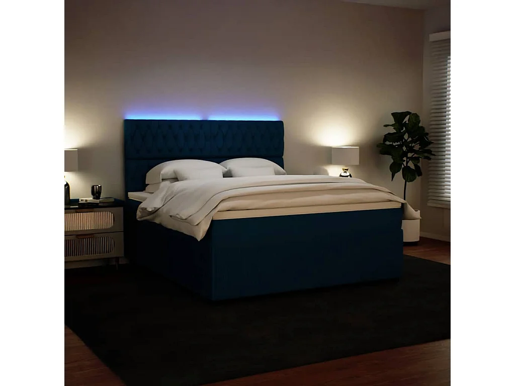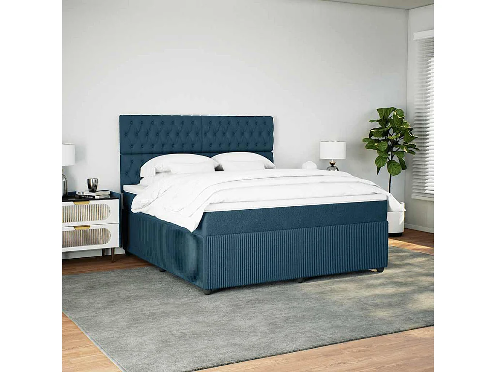Sommier à lattes de lit et matelas bleu 180x200 cm velours