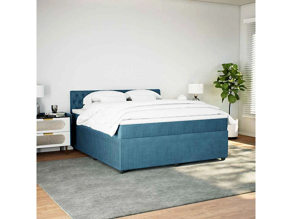 Sommier à lattes de lit et matelas bleu 180x200 cm velours