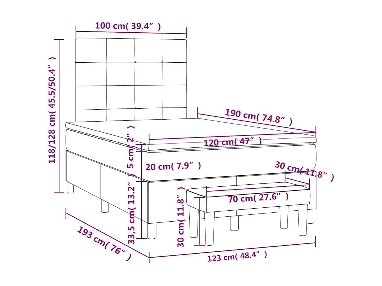 Sommier à lattes de lit et matelas bleu foncé 120x190cm velours