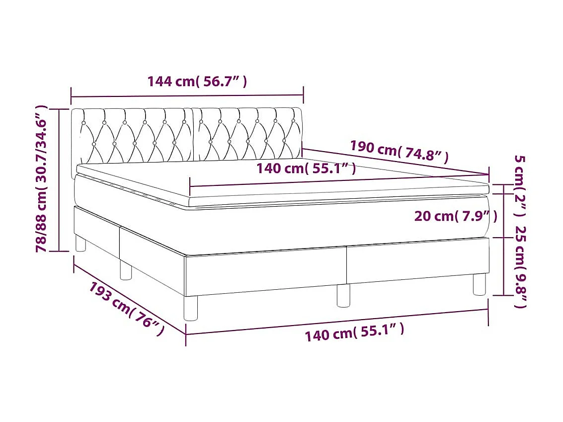 Sommier à lattes de lit et matelas Bleu foncé 140x190cm Velours