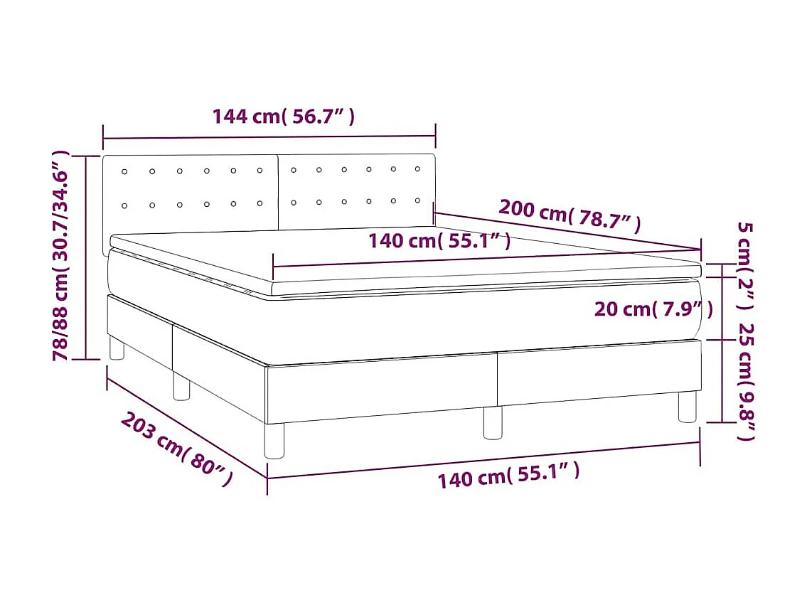 Sommier à lattes de lit et matelas Bleu foncé 140x200cm Velours