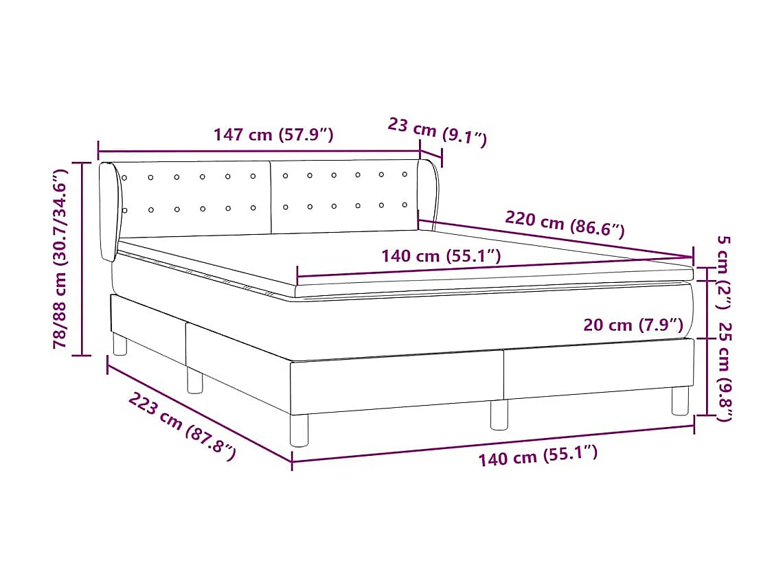 Sommier à lattes de lit et matelas bleu foncé 140x220cm velours