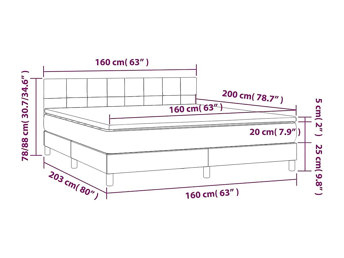 Sommier à lattes de lit et matelas Bleu foncé 160x200cm Velours