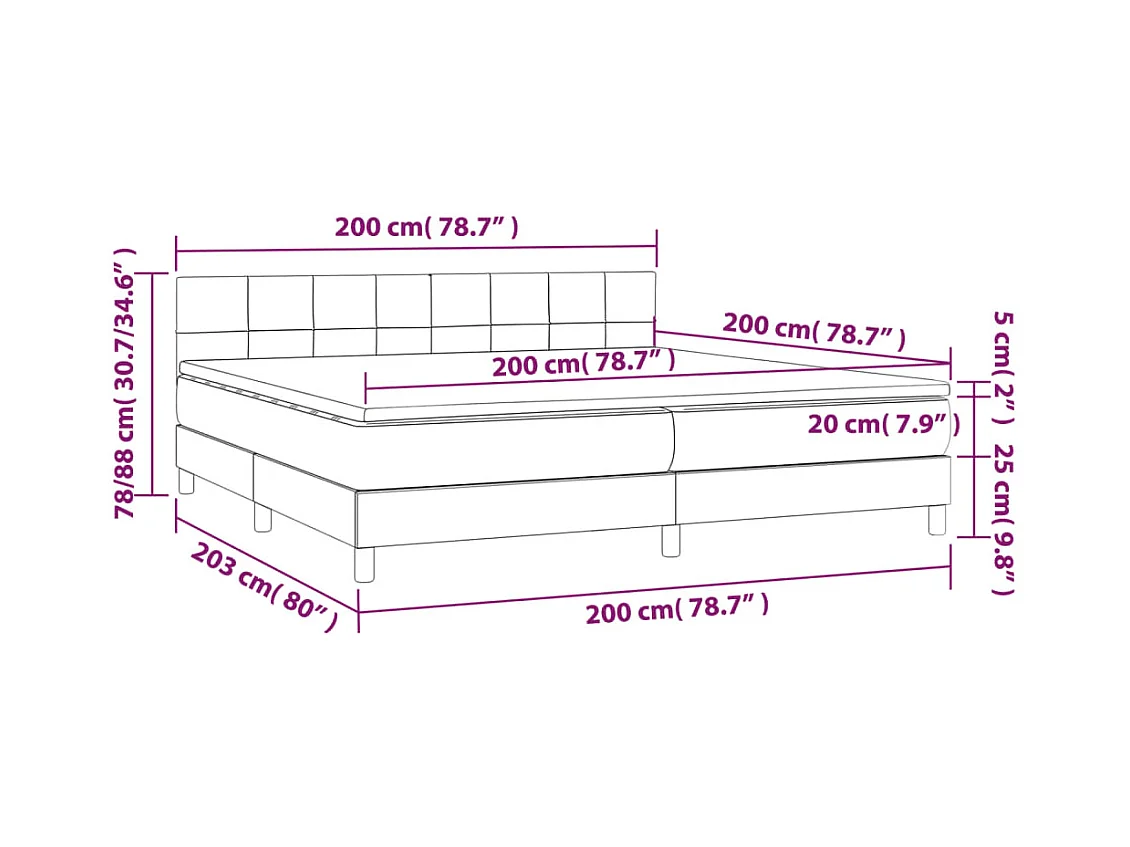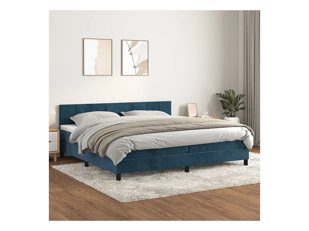 Sommier à lattes de lit et matelas Bleu foncé 200x200cm Velours