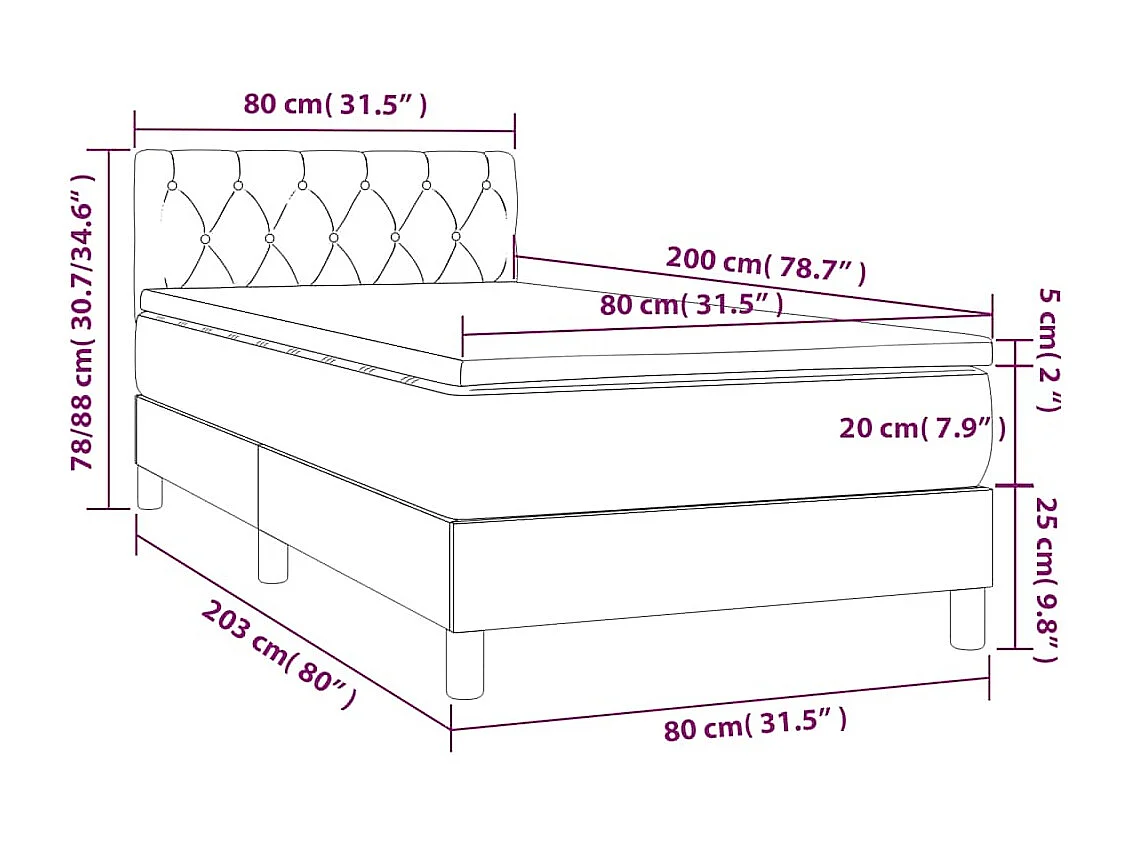 Sommier à lattes de lit et matelas Bleu foncé 80x200 cm Velours