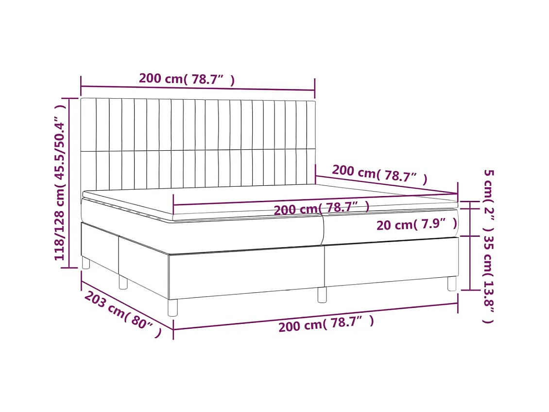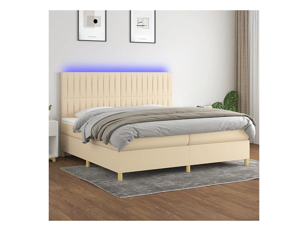 Sommier à lattes de lit et matelas et LED Crème 200x200cm Tissu
