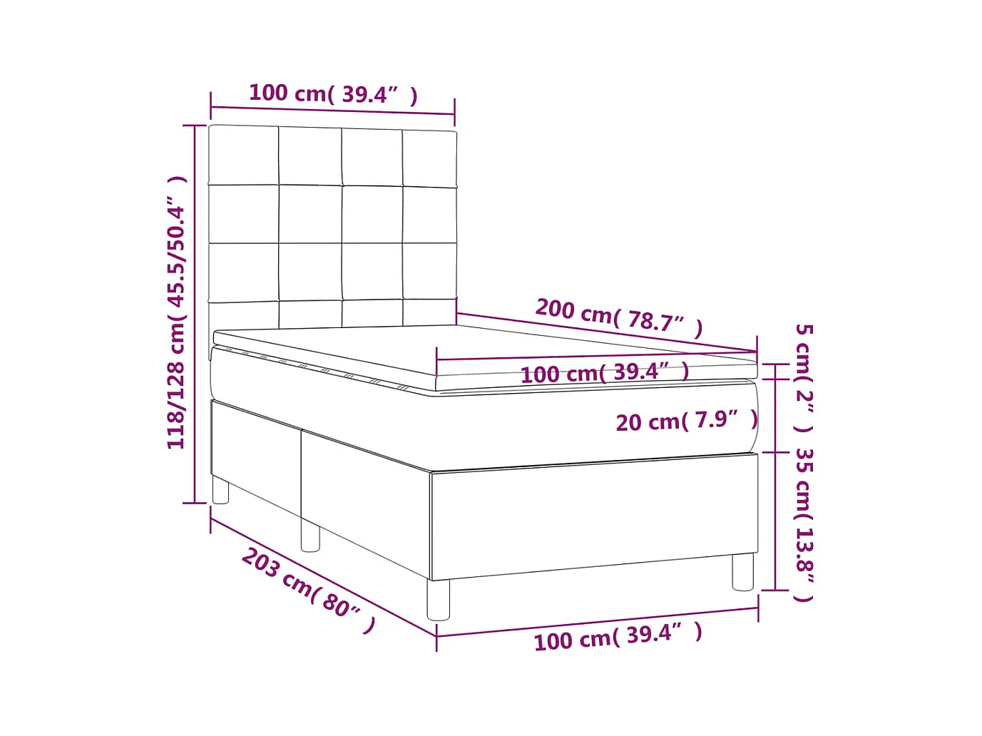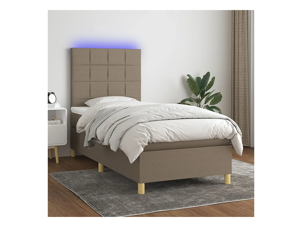 Sommier à lattes de lit et matelas et LED Taupe 100x200cm Tissu