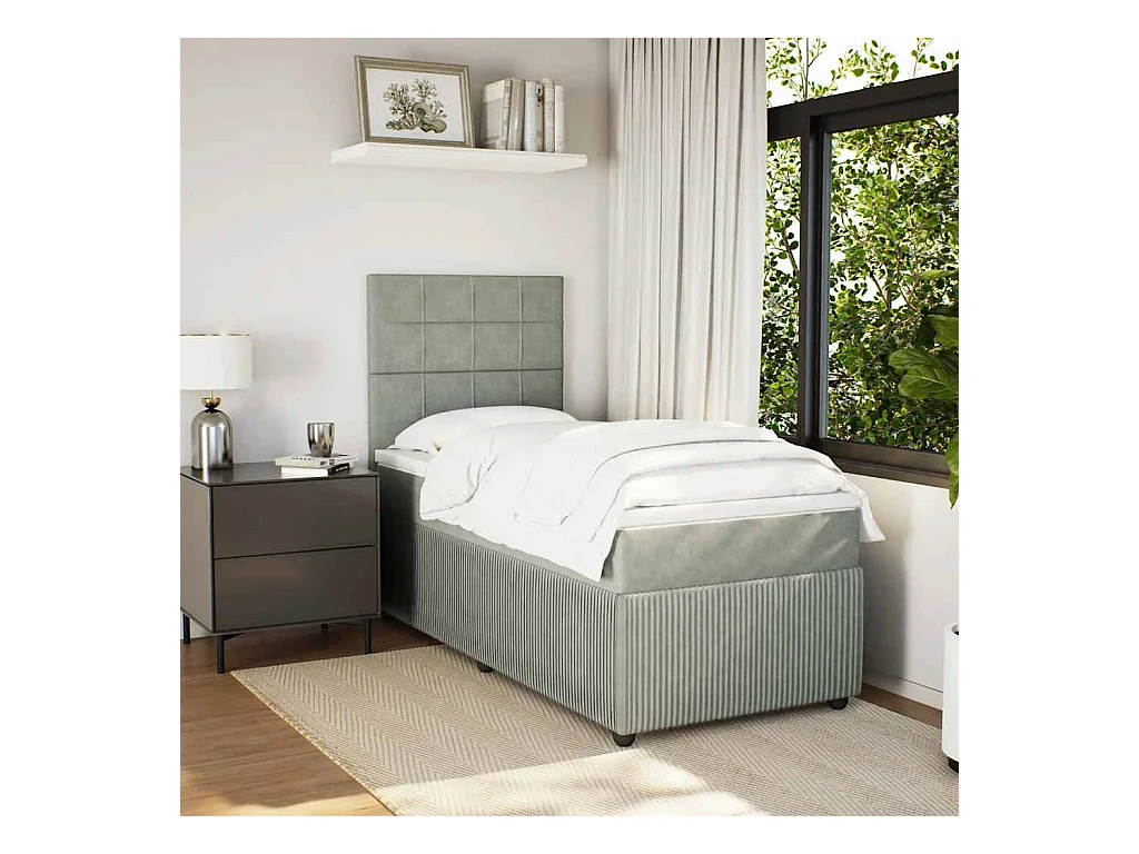 Sommier à lattes de lit et matelas Gris clair 100x200cm Velours