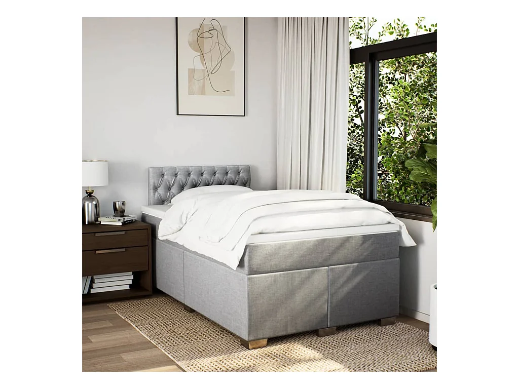 Sommier à lattes de lit et matelas gris clair 120x190 cm tissu