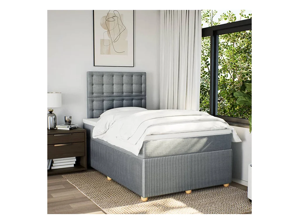 Sommier à lattes de lit et matelas gris clair 120x190 cm tissu