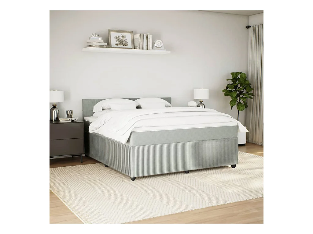 Sommier à lattes de lit et matelas Gris clair 180x200cm Velours