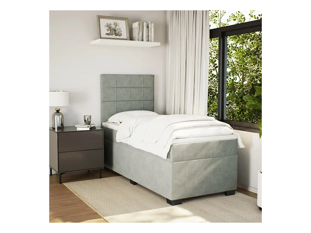 Sommier à lattes de lit et matelas Gris clair 90x200 cm Velours