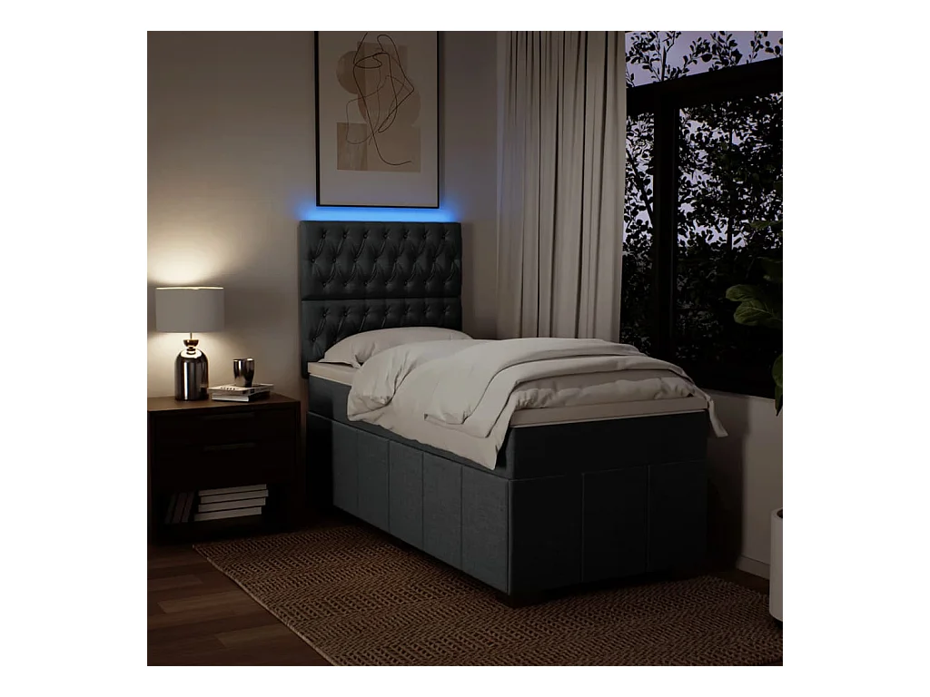 Sommier à lattes de lit et matelas Gris foncé 90x190 cm Tissu