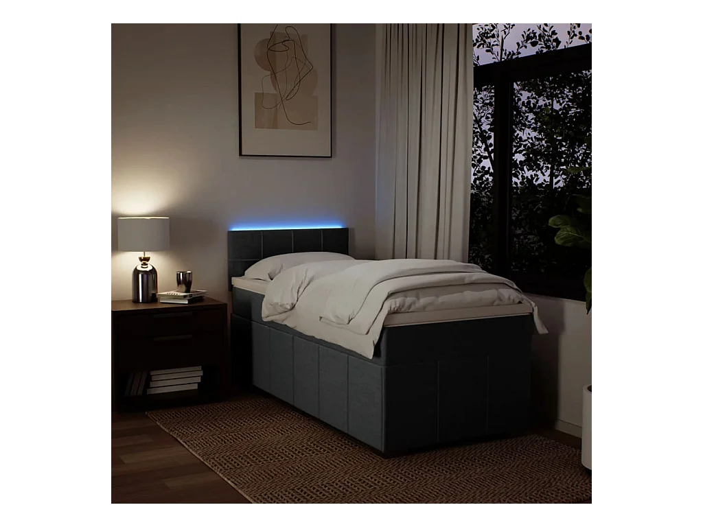 Sommier à lattes de lit et matelas Gris foncé 90x190 cm Tissu
