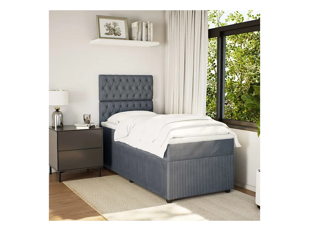 Sommier à lattes de lit et matelas Gris foncé 90x190 cm Velours