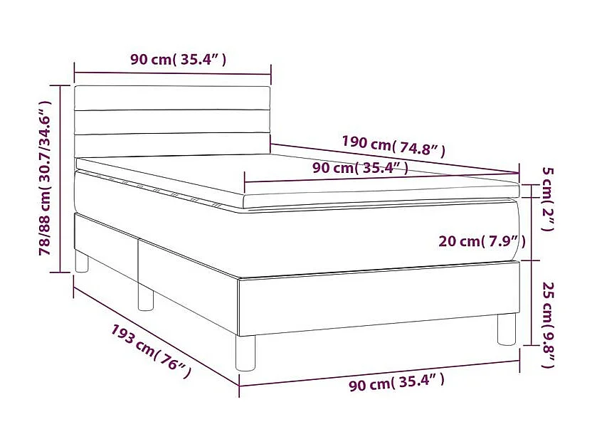 Sommier à lattes de lit et matelas Gris foncé 90x190 Tissu