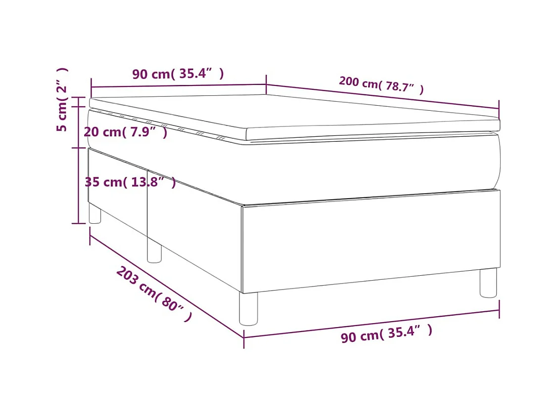 Cadre de lit avec matelas Gris clair 90 x 200 cm Velours