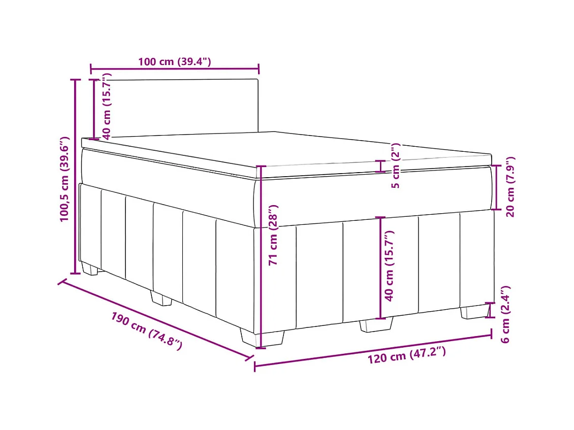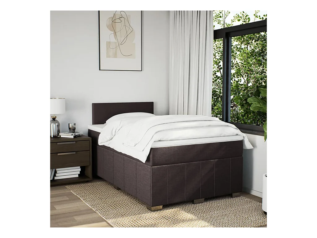 Sommier à lattes de lit et matelas marron foncé 120x190cm tissu