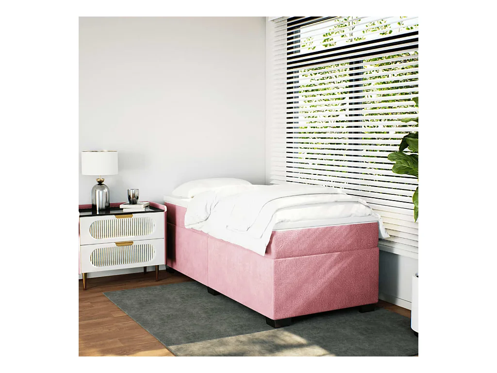 Ensemble complet boxspring + matelas Rose 80x200 cm Velours FR27072