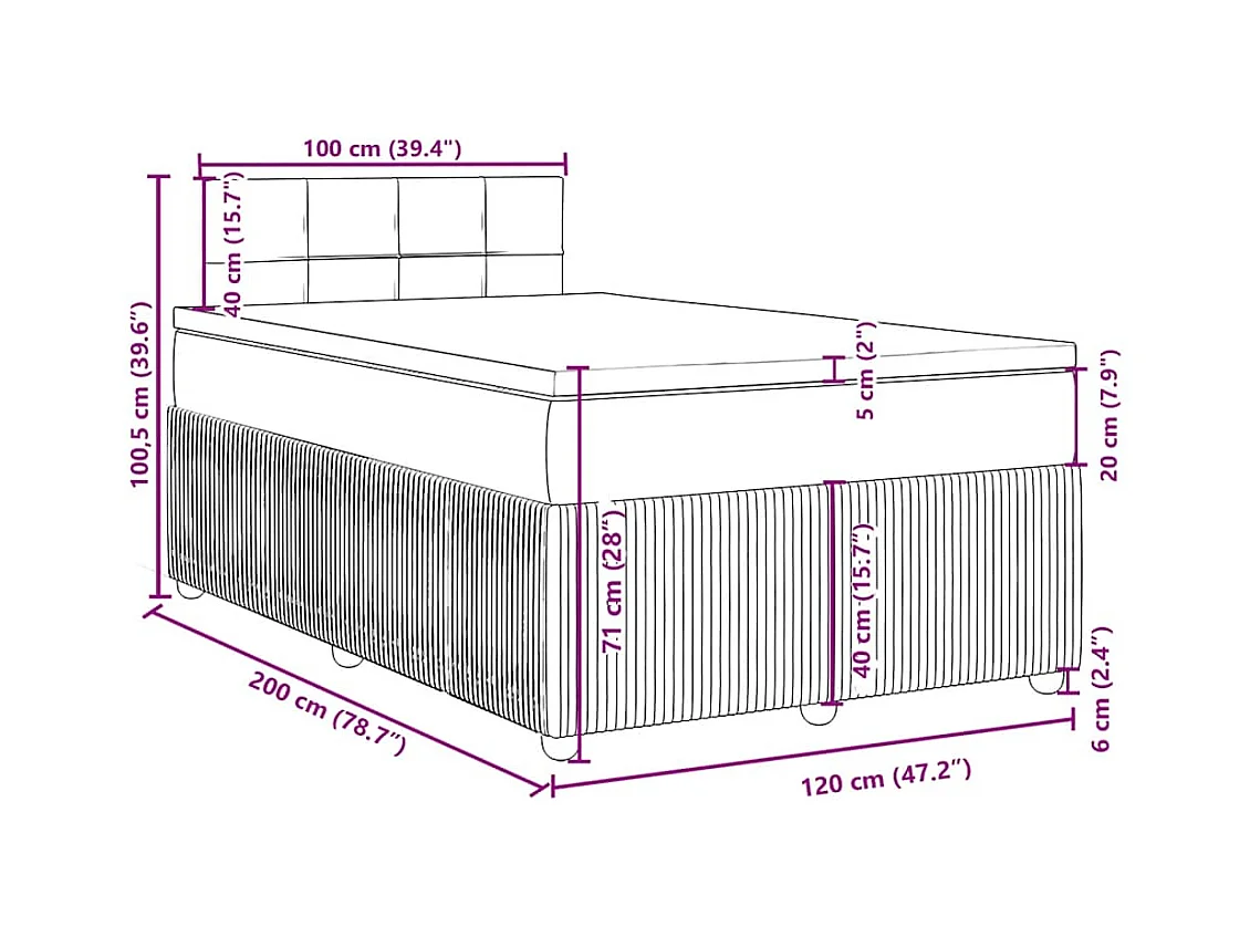Cadre de lit avec matelas Vert foncé 120 x 200 cm Velours