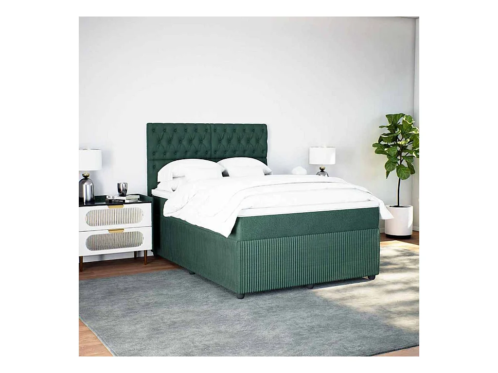 Cadre de lit avec matelas Vert foncé 140 x 190 cm Velours