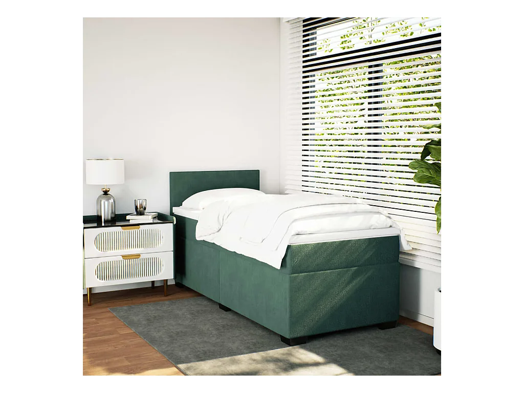 Ensemble complet boxspring + matelas Vert foncé 80x200 cm Velours FR25034