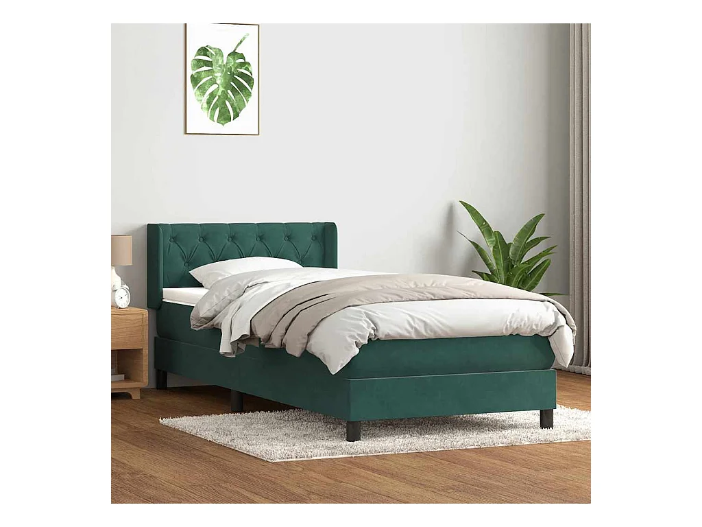 Sommier à lattes de lit et matelas vert foncé 80x220 cm velours