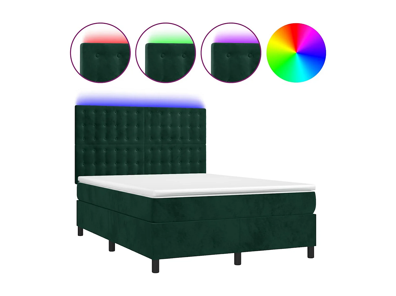 Sommier à lattes de lit matelas et LED Vert foncé 140x190 cm
