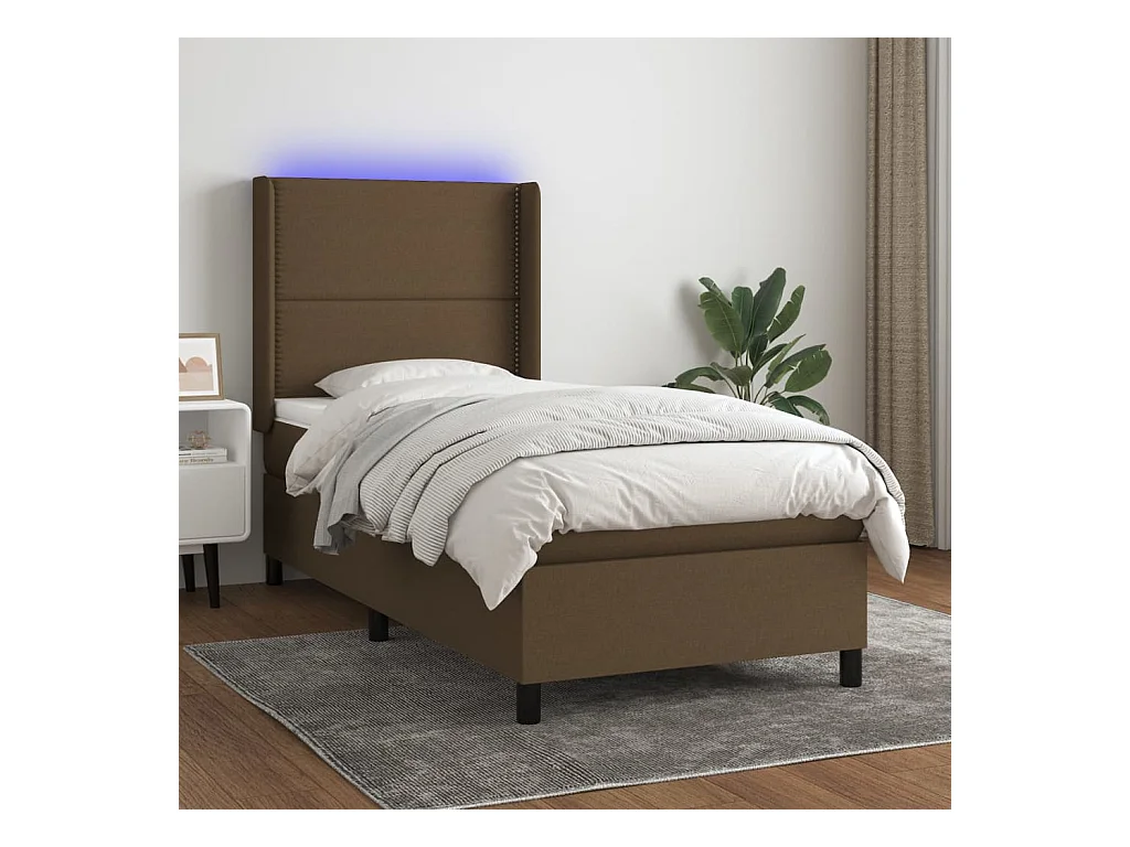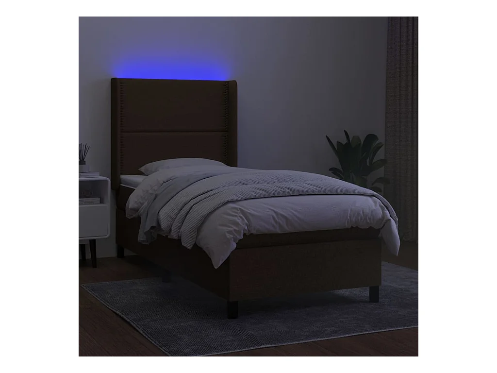 Sommier à lattes de lit matelas et LED Marron foncé 100x200 cm