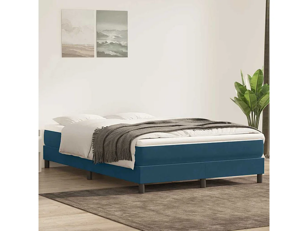 Lit à ressorts avec matelas Bleu foncé 120 x 200 cm Velours