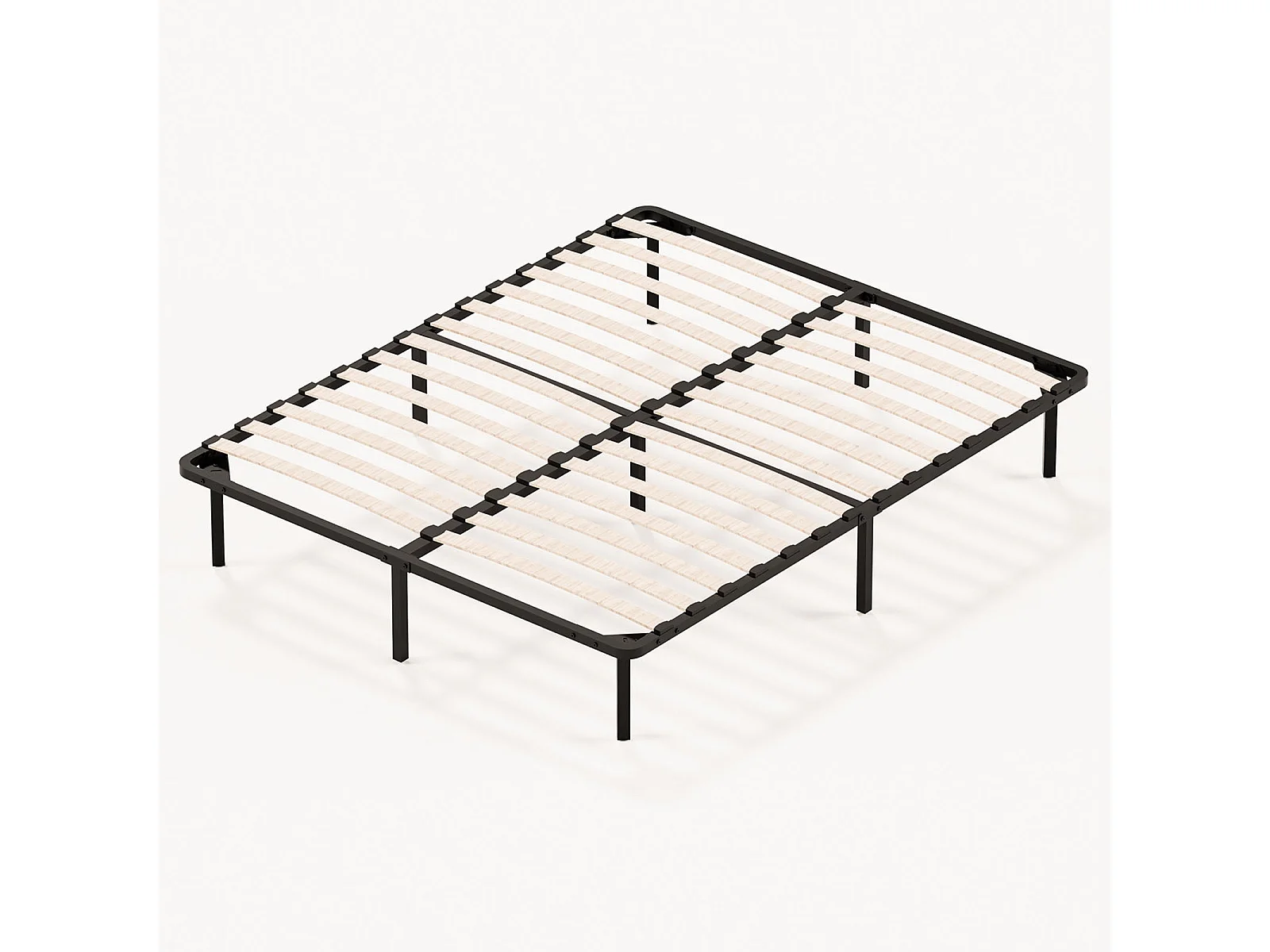 Sommier à lattes renforcé 160 x 200 cm, 1 x 14 rangées, 6 pieds, finition noire