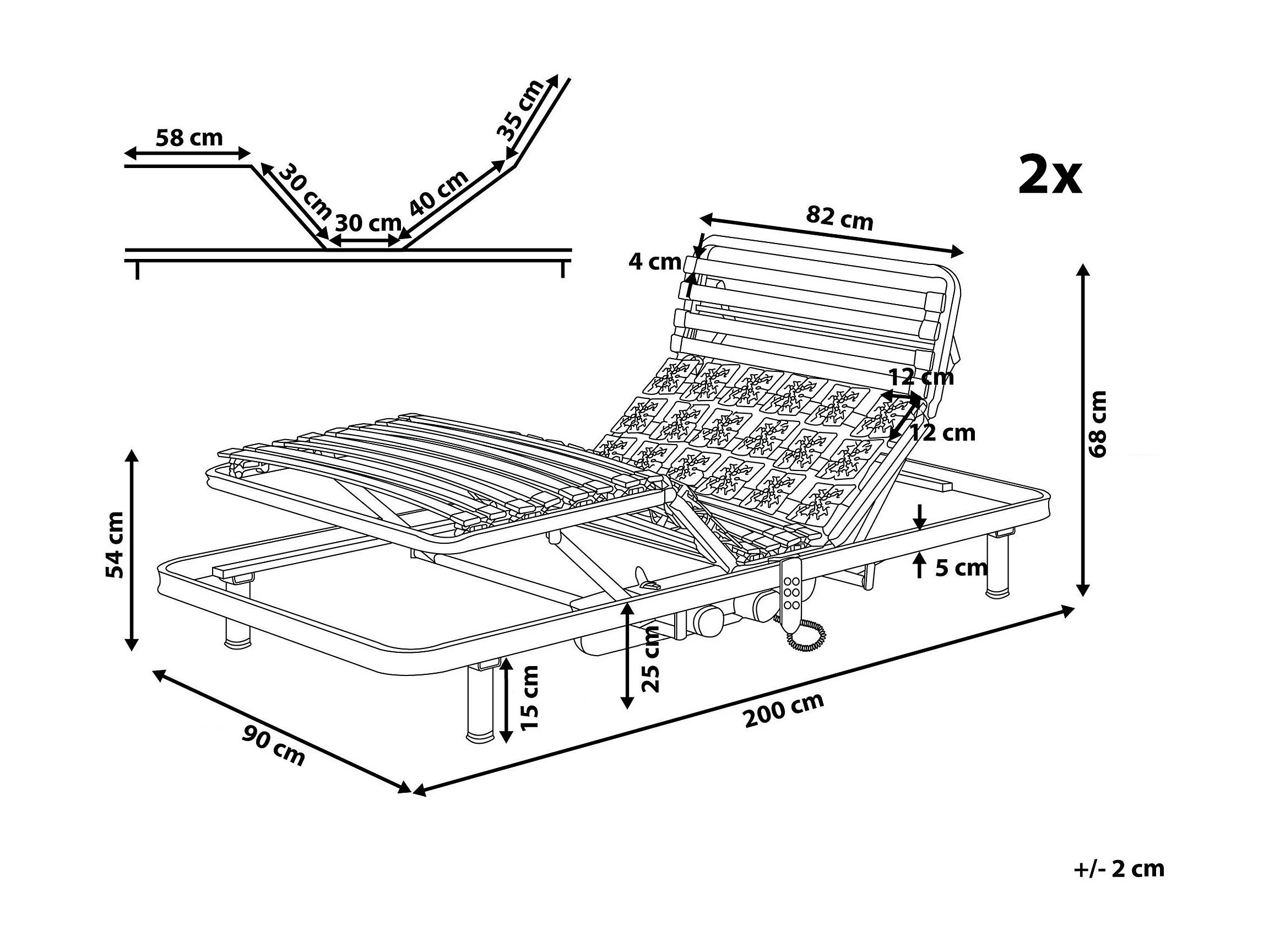 Lot de 2 sommiers électriques réglables MOON 180 x 200 cm Gris foncé