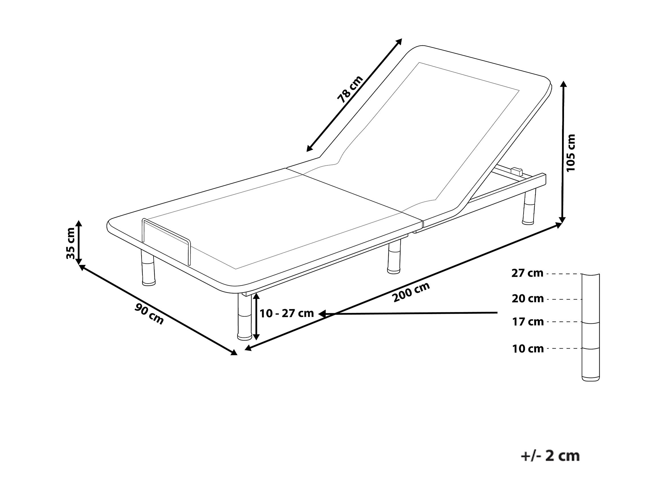 Sommier réglable électrique BRUNOY 90 x 200 cm Gris