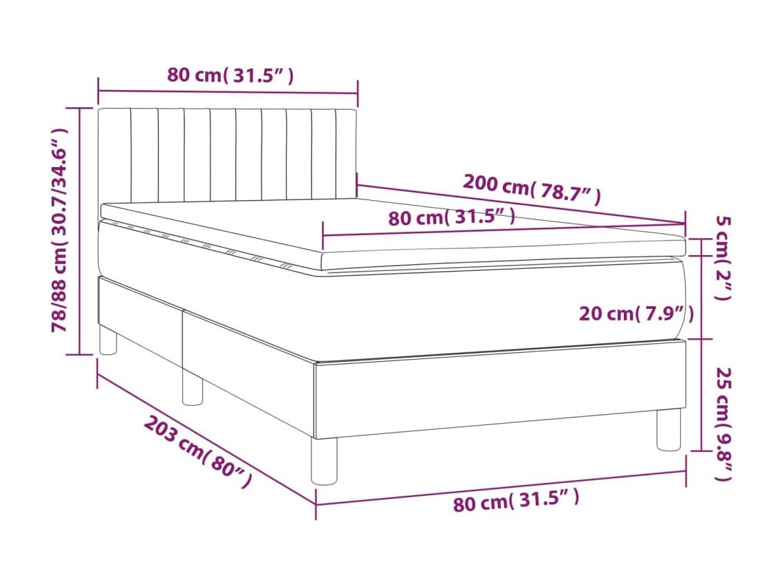 Sommier tapissier avec matelas et LED Gris foncé 80x200cm Tissu